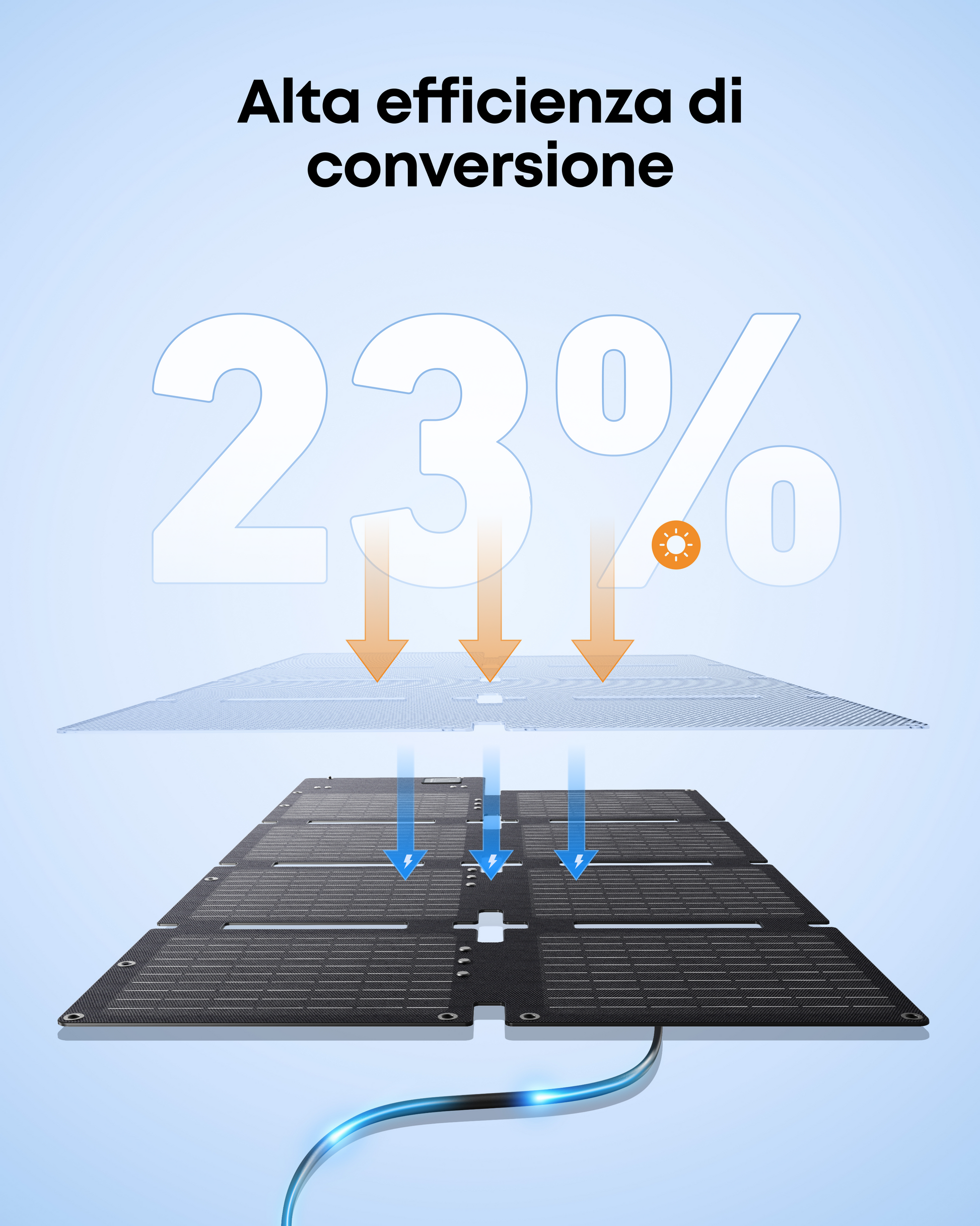 Più leggero del 40% rispetto a pannelli simili: il pannello è ultra leggero e può essere trasportato con una sola mano.